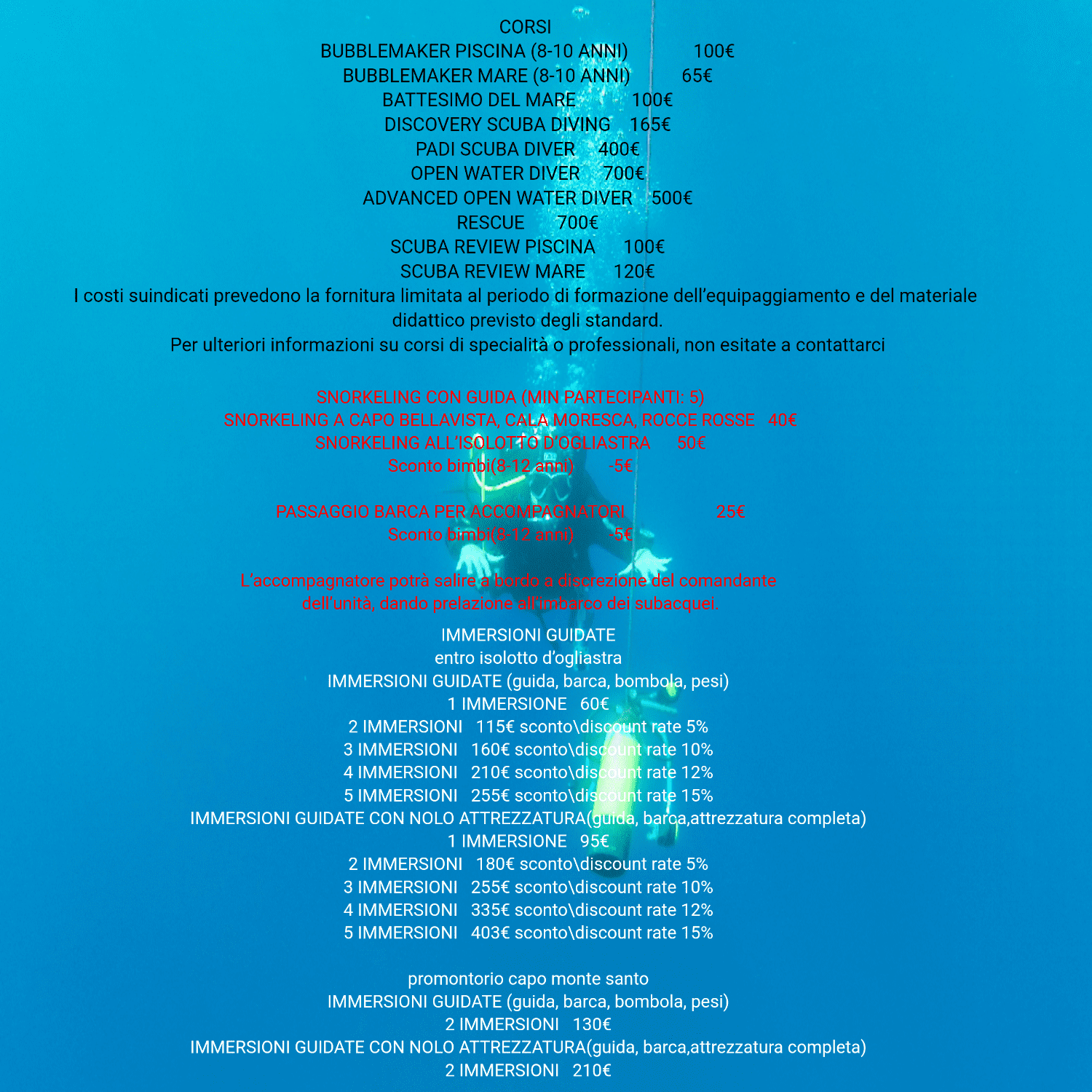 • Corsi per tutti i livelli per i neofiti e per coloro che intendono specializzarsi nei programmi della subacquea ricreativa P.A.D.I.